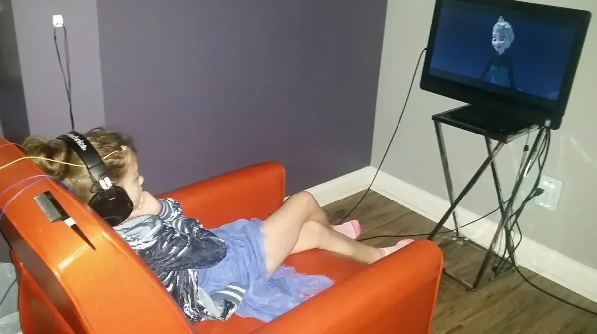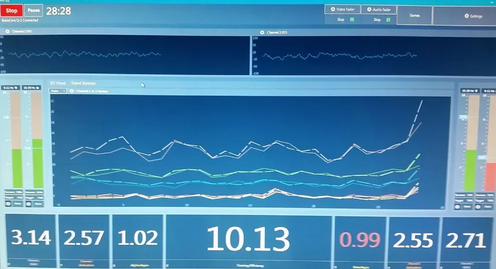 Information about these brainwaves is displayed on the provider’s monitor. The BrainCore Neurofeedback software automatically detects when the brainwaves are properly ordered, and it feeds that information back to the patient in real time through training media chosen by the patient, which is a movie, or TV show.